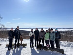 Karen’s snowshoe group of 7 plus one canine companion took advantage of Goldilocks perfect conditions and enjoyed the snow-draped enchanted forest at Parc Regional Sainte-Agathe-des-Monts on Sunday.