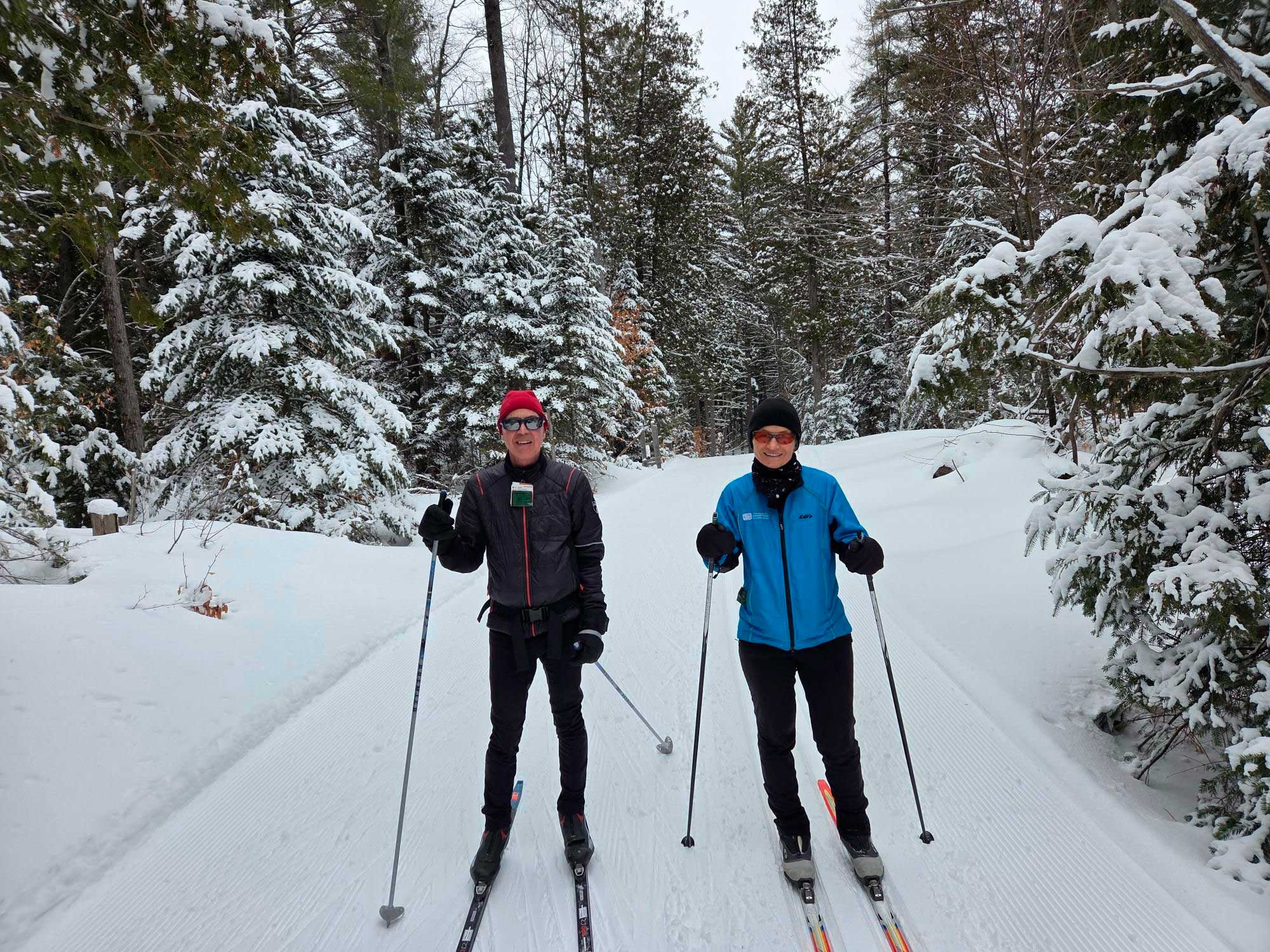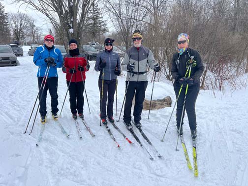 There were 7 skiers and 6 snowshoers at Parc des Campeurs yesterday to enjoy the beautiful powder snow conditions. Two new members joined us, Martin & Katherine. With so much snow lately, all the trails are now open and in terrific shape. Six happy snowshoers enjoyed exploring the rolling wooded terrain blanketed with fresh snow. We moved the outing to Saturday to avoid Sunday’s winter storm.