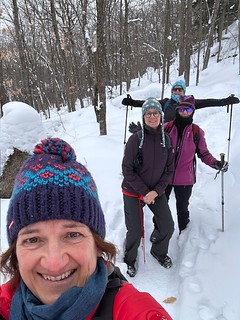 Karen’s snowshoe group of 7 plus one canine companion took advantage of Goldilocks perfect conditions and enjoyed the snow-draped enchanted forest at Parc Regional Sainte-Agathe-des-Monts on Sunday.