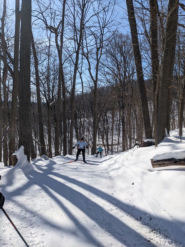It was a balmy -18C at 10 am when we headed out on the beautifully groomed trails of Parc national du Mont-Saint-Bruno. With the warm sunshine and lots of climbing we were all able to keep warm. It’s nice to have such a great ski center this close to Montreal.