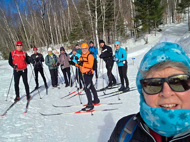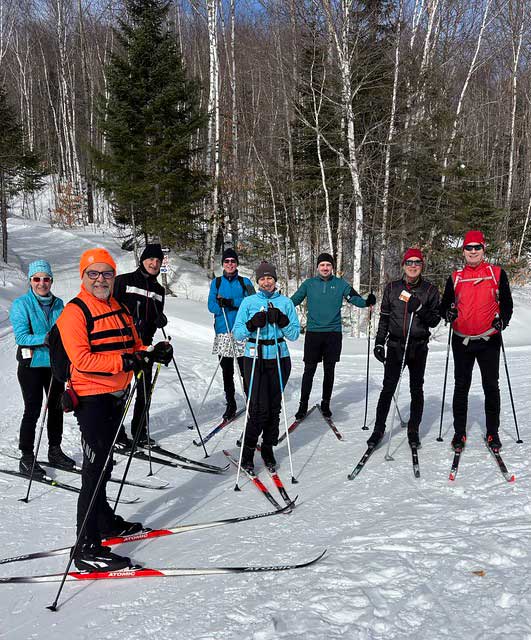 Ski notes and photos by Dennis: There were 9 skiers and 5 snowshoers in Morin-Heights for the first outing of the ski season. They received 15cm of snow overnight for a total of 40cm on the ground. It was a very enjoyable ski and snowshoe, and most of us went to Mickey’s Cafe for lunch afterwards.